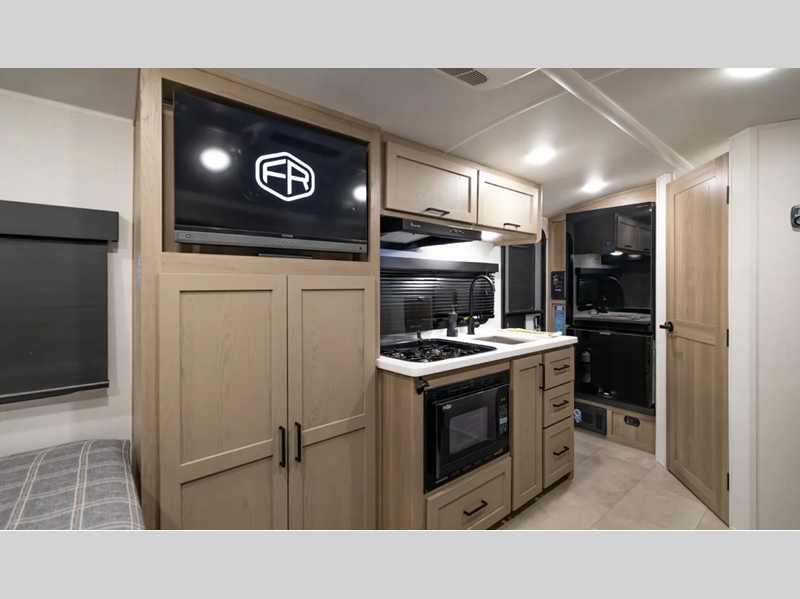 Sleeps 5 Slides 1 Length 21 ft 2 in Ext Width 7 ft 8 in Ext Height 10 ft 4 in Hitch Weight 501 lbs Dry Weight 3843 lbs Cargo Capacity 1155 lbs Fresh Water Capacity 31 gals Grey Water Capacity 27 gals Black Water Capacity 27 gals Furnace BTU 20000 btu Number Of Bunks 2 Available Beds Full Refrigerator Type 12V Convection Cooking Yes Cooktop Burners 3 Number of Awnings 1 LP Tank Capacity 20 lbs Water Heater Type Gas/Electric AC BTU 13500 btu TV Info LR 12V Smart TV Awning Info 14' Power Axle Count 1 Number of LP Tanks 2 Shower Type Standard Similar Floorplans